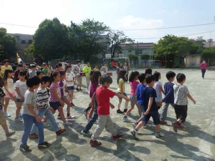 今日の朝会はとても爽やかな青空のもとで行われました。