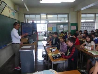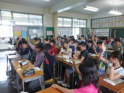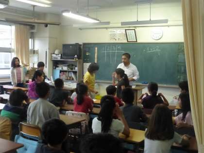 各学年の教室では楽しい英語遊びが展開され、早くも子どもたちには人気の先生になりました。
