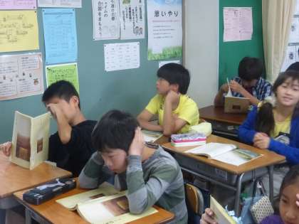 6年生が日本語の時間に島崎藤村の詩を暗唱していました。