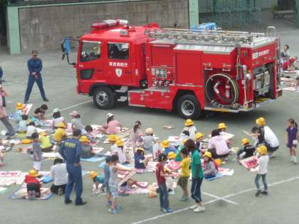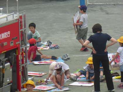 1、2年生の子たちが毎年恒例になっている消防写生会を行いました。
