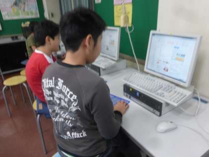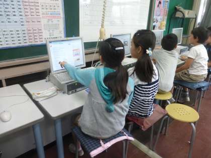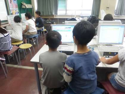インターネットを使って稲の育つ様子やたくさん採れる場所などについて調べ、これから始まるバケツ稲の準備を進めていました。
