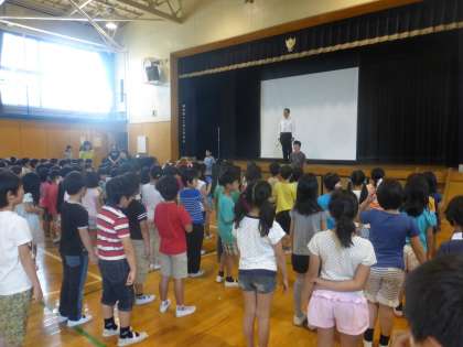 若小の一週間は全校朝会から始まります。