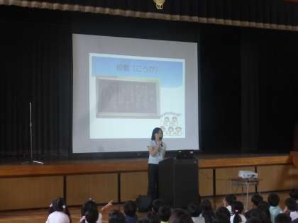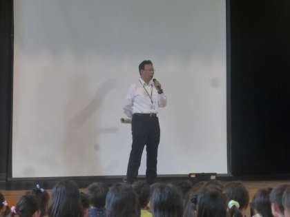 6年生のあいさつの後で校長先生から若小ができた頃についてのお話がありました。