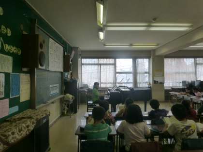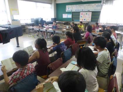 4年生が音楽の時間に元気いっぱいの歌声を披露していました。
