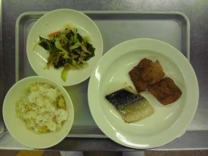 献立名 雑穀ご飯 牛乳 魚の塩焼き 生揚げの含め煮 和風サラダ
