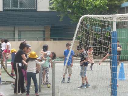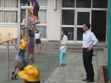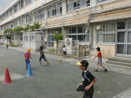 晴れ間になった中休みには、校庭で遊ぶ子がたくさんいました。