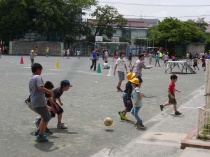 高学年生に混ざって一緒に遊ぶ子もいて、若小の1年生は元気だなと思いました。