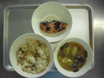 献立名 子ぎつねご飯 牛乳 鮭の南部焼き みそ汁