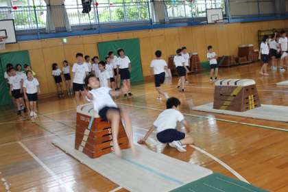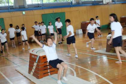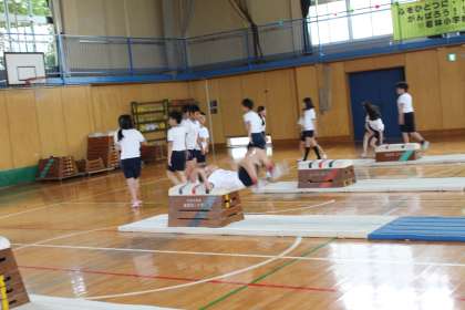 6年生が体育館で器械体操に取り組みました。