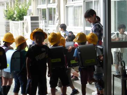 先生たちもそんな子たちにあいさつをするためにたくさん玄関に集まっています。