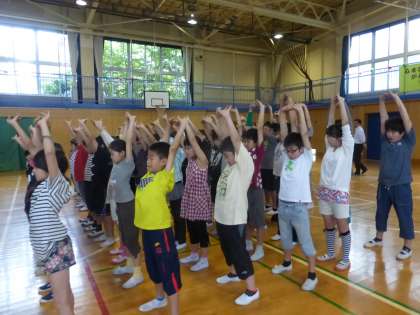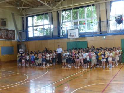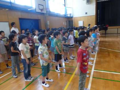 1年生から6年生まで、力いっぱいの歌声が体育館に響き渡りました。