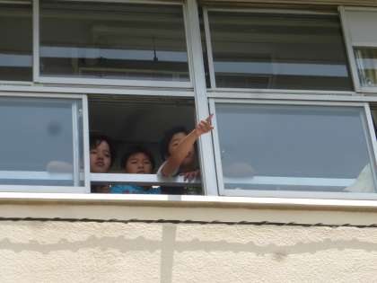 3階の教室から全体のバランスを見て指示を出す子もいました。