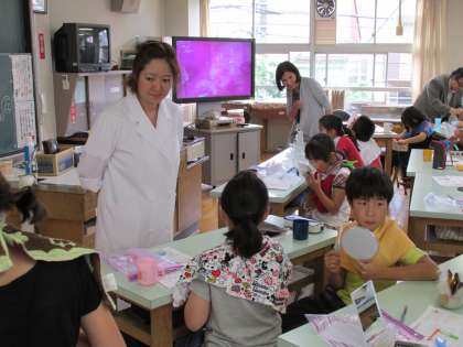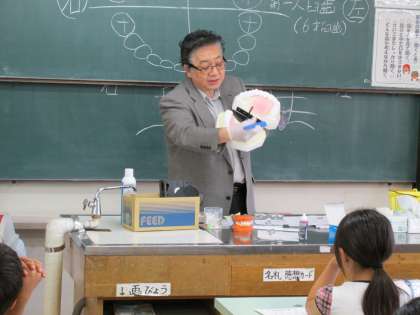 4年生では毎年、校医さんによる歯みがき指導を行っています。