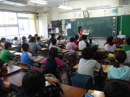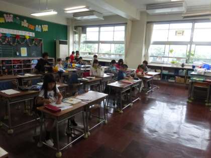 若小の子たちは読書の音楽が鳴り出すと、静かに着席して本を読む態勢になります。