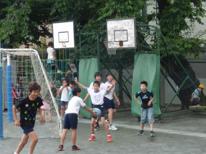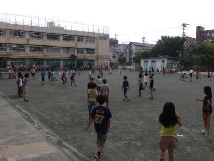 梅雨の晴れ間となった中休みに、たくさんの子たちが校庭遊びに参加していました。