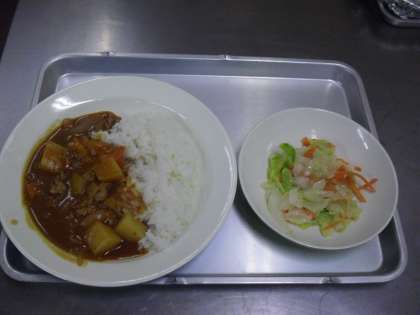 献立名:ハッシュドポークライス、牛乳、キャベツサラダ