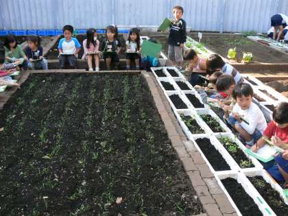 2年生は秋の野菜作りでホウレンソウを作っています。