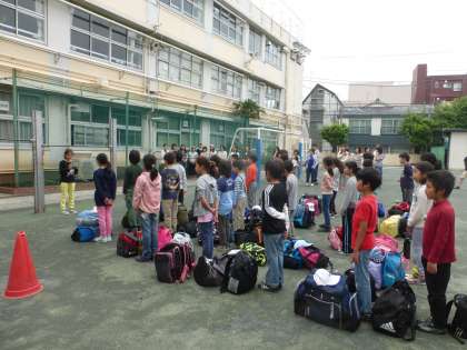 大勢の保護者の皆様にお見送りをいただき、ますます喜ぶ5年生です。