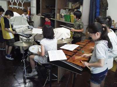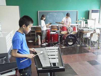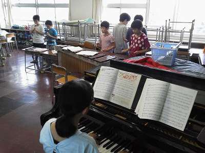 6年生が音楽の時間にラバースコンチェルトの合奏を練習しています。