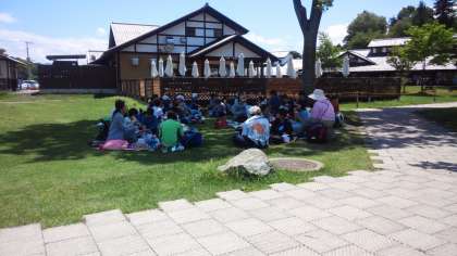 田園プラザに到着し、お弁当を食べています。雨が降りそうな気配はありません。さわやかな天気です。