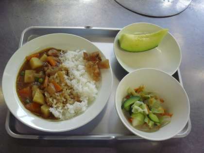 献立名 カレーライス 牛乳 野菜の甘酢かけ メロン
