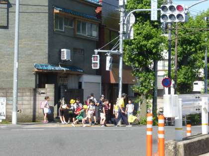 そのために先生たちが通学路に立って、子どもたちの安全確保にあたりました。