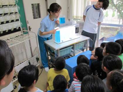 本日1,2校時に社会科の「くらしを支える水」の関連で、水道キャラバンの方々に来ていただき、授業を行いました。雨水が飲み水になるまでをわかりやすく教えていただき、実験をしながら水をきれいにする仕組みもまなぶことができました。