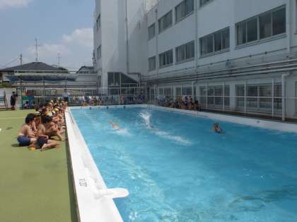 校長先生のお話の後、希望者による模範水泳が行われました。