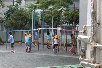 若小の子たちは今日も校庭で元気に遊んでいます。