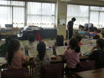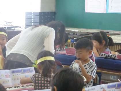 1年生が音楽の時間に鍵盤ハーモニカを演奏しました。