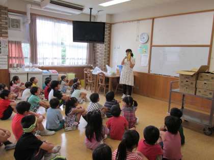 1年生が給食に使うトウモロコシの皮をむく活動に取り組みました。