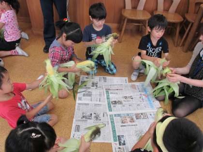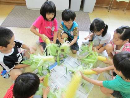 【1年生】トウモロコシの皮をむく