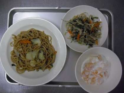 献立名 塩焼きそば 牛乳 ナムル フルーツヨーグルト