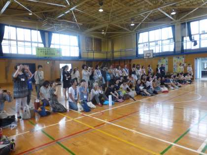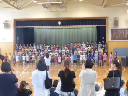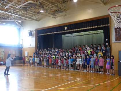 保護者会に先立って、体育館に3学年が集まり、歌の発表をしました。
