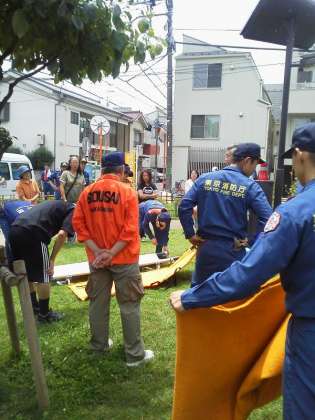 6日(日)に緑道近くの広場で若林町会の防災訓練が行われました。