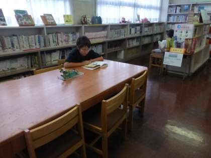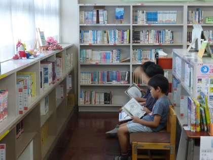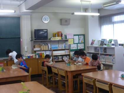 雨の休み時間には、たくさんの子が読書に訪れています。