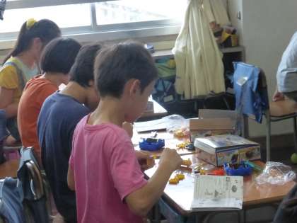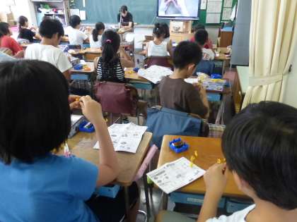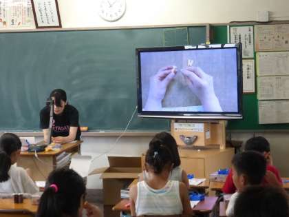 5年生がコイルを丁寧に巻きながら電磁石づくりに挑戦しています。