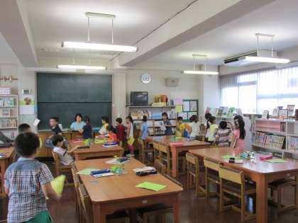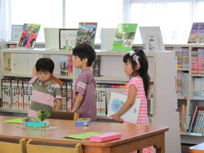 1年生が図書の時間に読書に親しみました。
