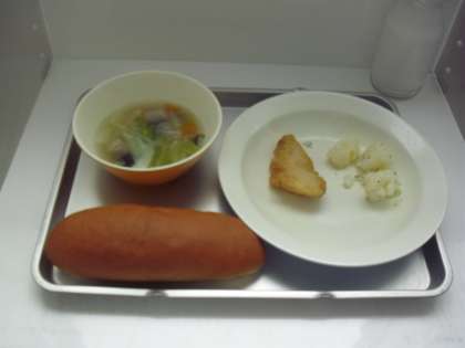主な食材の産地 ミルクパン(アメリカ・カナダ)メルルーサ(ニュージランド)じゃがいも(茨城)ベーコン(茨城・群馬・千葉)ウインナー(茨城・群馬・千葉)にんじん(千葉)たまねぎ(三重)キャベツ(群馬)もやし(栃木)こまつな(長崎)