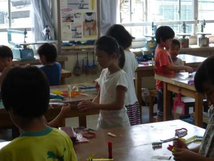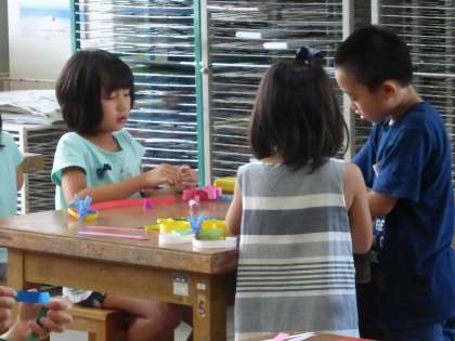 細長い紙を2枚組み合わせてばねを作ったり、好きな形を作ったり、