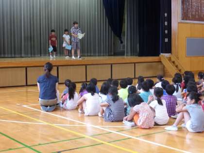 児童集会と同様に、みんな静かに校長先生の話に聞き入っています。