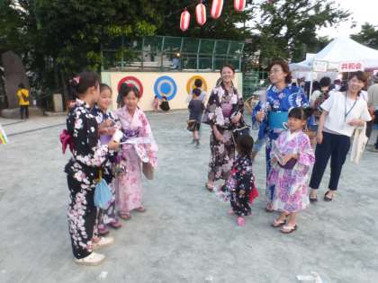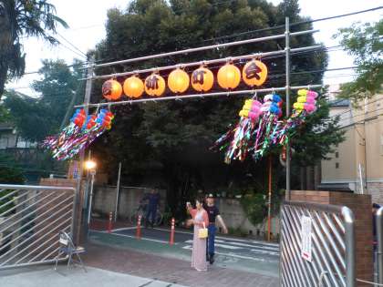 提灯の明かりが浮かぶ中、多くの方が若小校庭にやってきました。