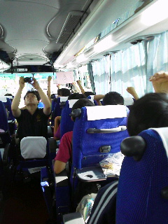 バスの車内は大にぎわい!