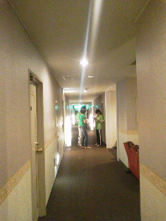 消灯時刻の21時30分になって、廊下には先生しかいません。