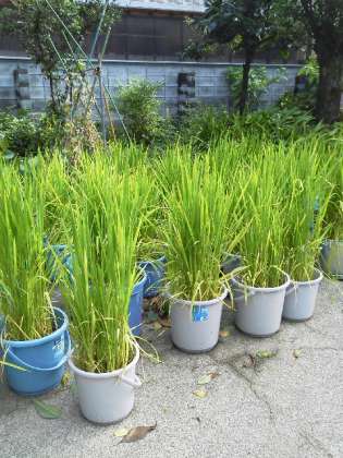 5年生が大切に育てているバケツ稲は