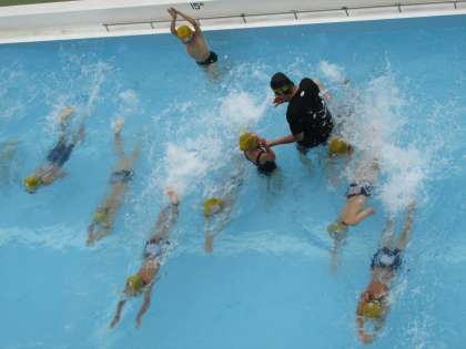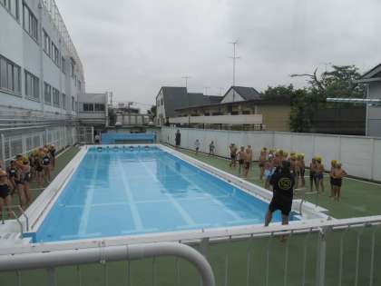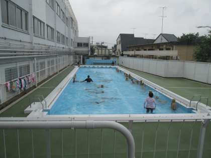 時々雨がパラつく中、今日もたくさんの子どもたちがプールに来ました。