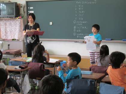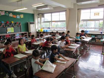 お教室で新しい教科書をもらったり、宿題を提出したり、夏休みの自由研究について説明したりと、