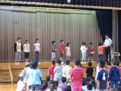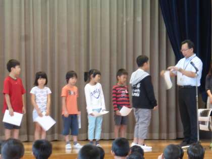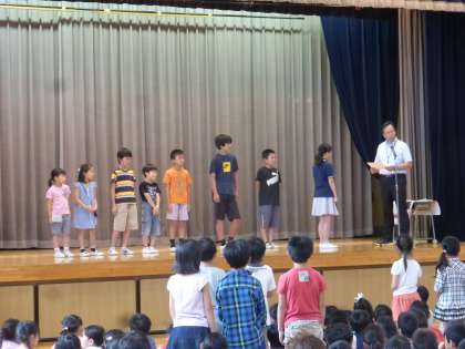 学校運営委員会の皆様が主催して下さった漢検と、夏季水泳指導にたくさん参加した子の表彰がありました。