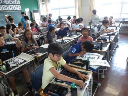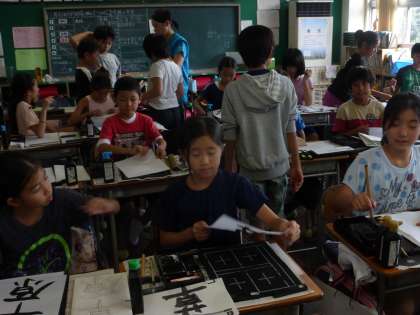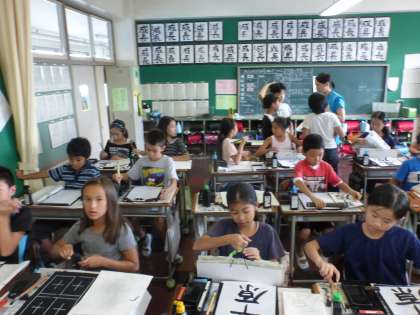 2学期初めての書写ですが、1学期同様、みんなしっかりと集中しながら半紙に向かっていました。