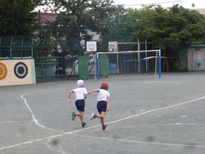 3年生が校庭を全力疾走していました。